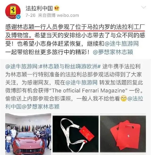 以及说自己参观了法拉利总部,结果官方出来盖章那是工厂和博物馆……