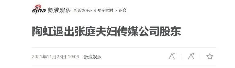 而在2021年11月23日,陶虹就被爆出退股和张庭夫妇合办的公司。