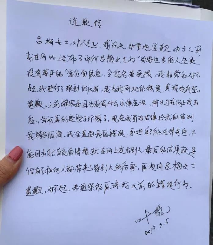 最终,法院判定叶璇败诉,赔偿和道歉一样都不能少。