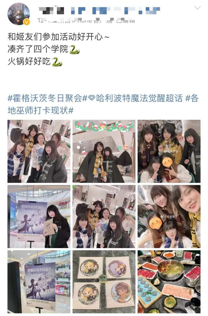 不过这年头,一般的社交途径已经满足不了社牛们的交友欲了,之前游戏开展的苹果线下店活动,就吸引了不少同学去现场“捕捉”新朋友。当时有巫师小伙伴戏称这波联动是“线下大型面基”,而事实也确实如此,很多同学在现场还找到同院姐妹,某位蛇院姐妹还成功集结四个学院的小伙伴,整完线下活动之余,一群人意犹未尽地相约干饭。