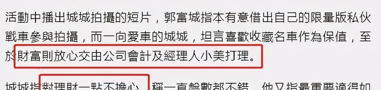 " ?可让网友们震惊的是,郭富城在婚后,仍然将自己的收入交由经纪人打理。由此,网友们推测“天王嫂”方媛并没有什么经济实权。