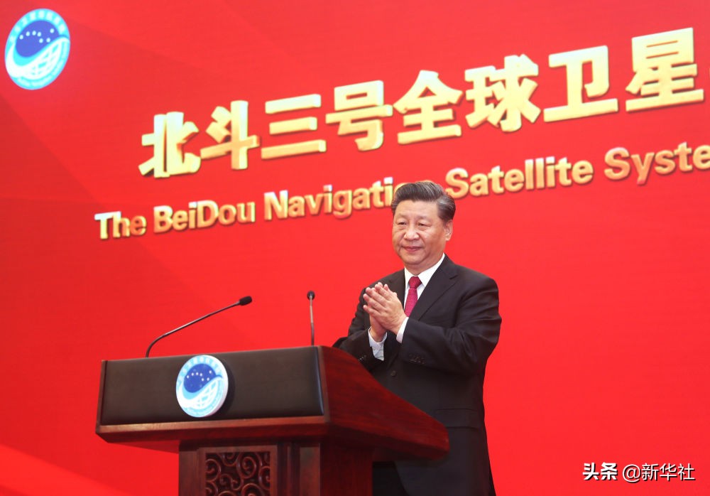 2020年7月31日,北斗三号全球卫星导航系统建成暨开通仪式在北京举行。习近平出席仪式,宣布北斗三号全球卫星导航系统正式开通。新华社记者 鞠鹏 摄