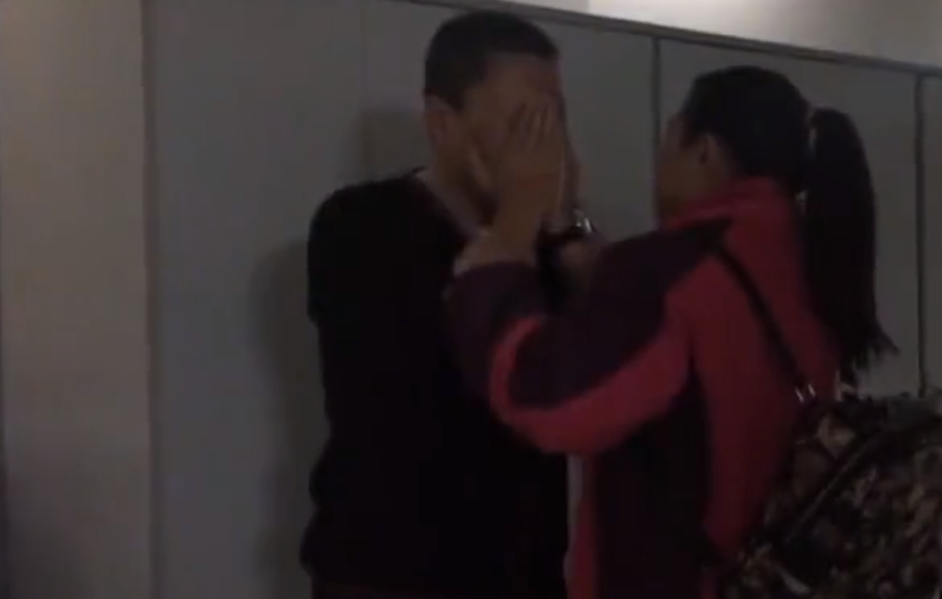 她稍愣了几秒后,推开门口的人就要冲向女儿,丹丹的爸爸连忙上前将妻子拉住。