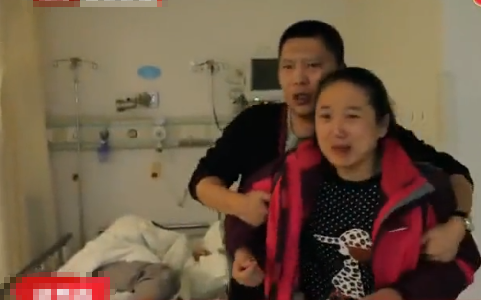 丹丹仿佛听见了爸爸妈妈的话,她的眼角流下了眼泪,丹丹爸爸忙安慰道:“不哭不哭啊,咱不哭,别流眼泪啊,坚强一点。”