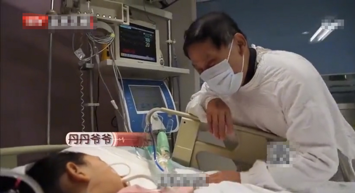 丹丹的爷爷佝偻着身子,步履蹒跚地走向丹丹的病床,爬满皱纹的脸上早已挂满了泪水。