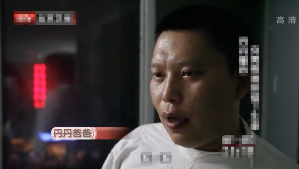 丹丹的爸爸痛哭出声,他努力控制着自己不受控制的眼泪,愧疚地对孩子说:“我的孩子对不起,孩子,爸爸对不起你,爸爸害你在这受罪,爸爸没办法救你,对不起,对不起......”