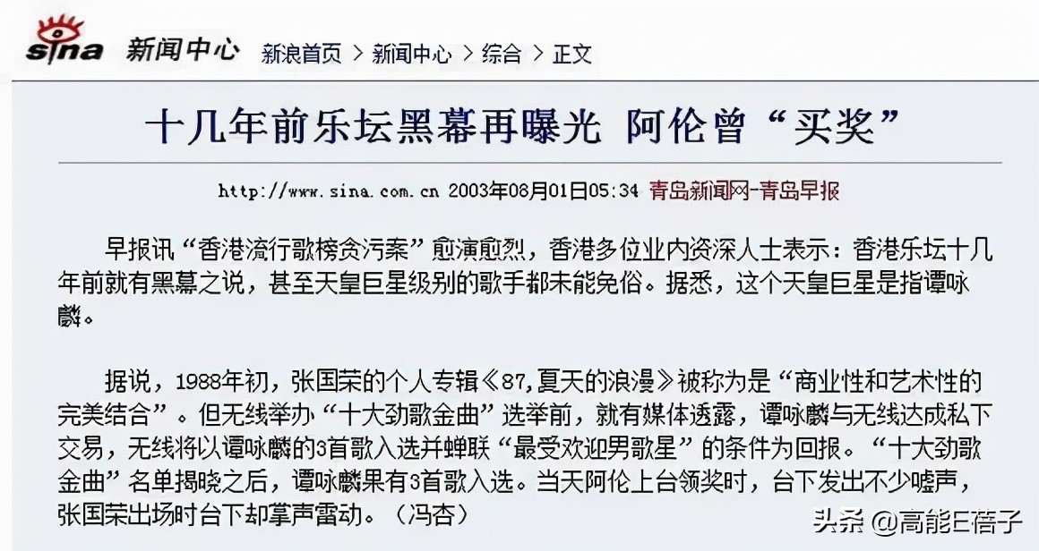 总之就是随着谭咏麟宣布不拿奖之后,所有的矛头又全都指向了张国荣。
