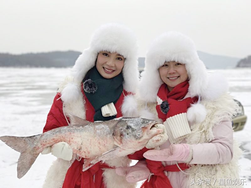 图为节目主持人手捧大鱼画面,这也是她们第一次来到镜泊湖参加冬捕。这两位主持人分别是广东卫视优秀节目主持人郭蕾(左)和广东最受欢迎的主持人之一徐靓(右)