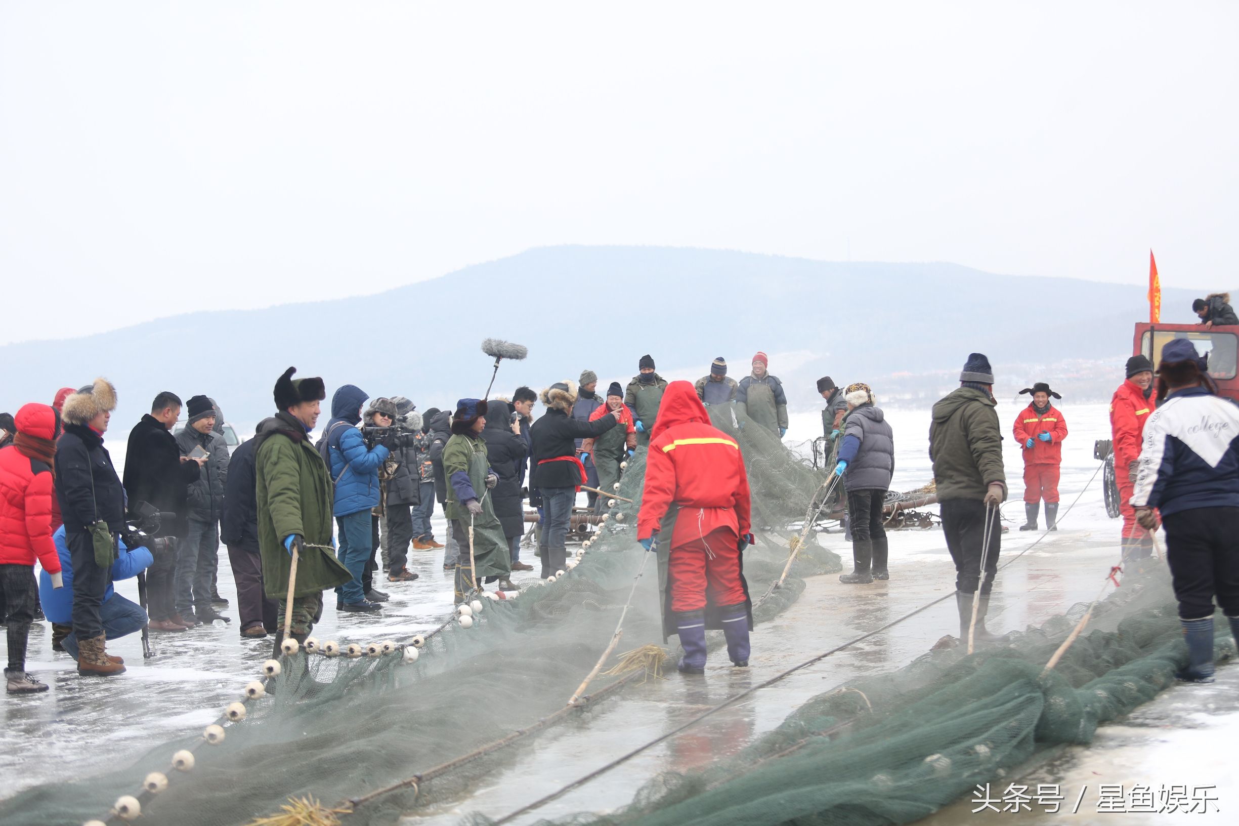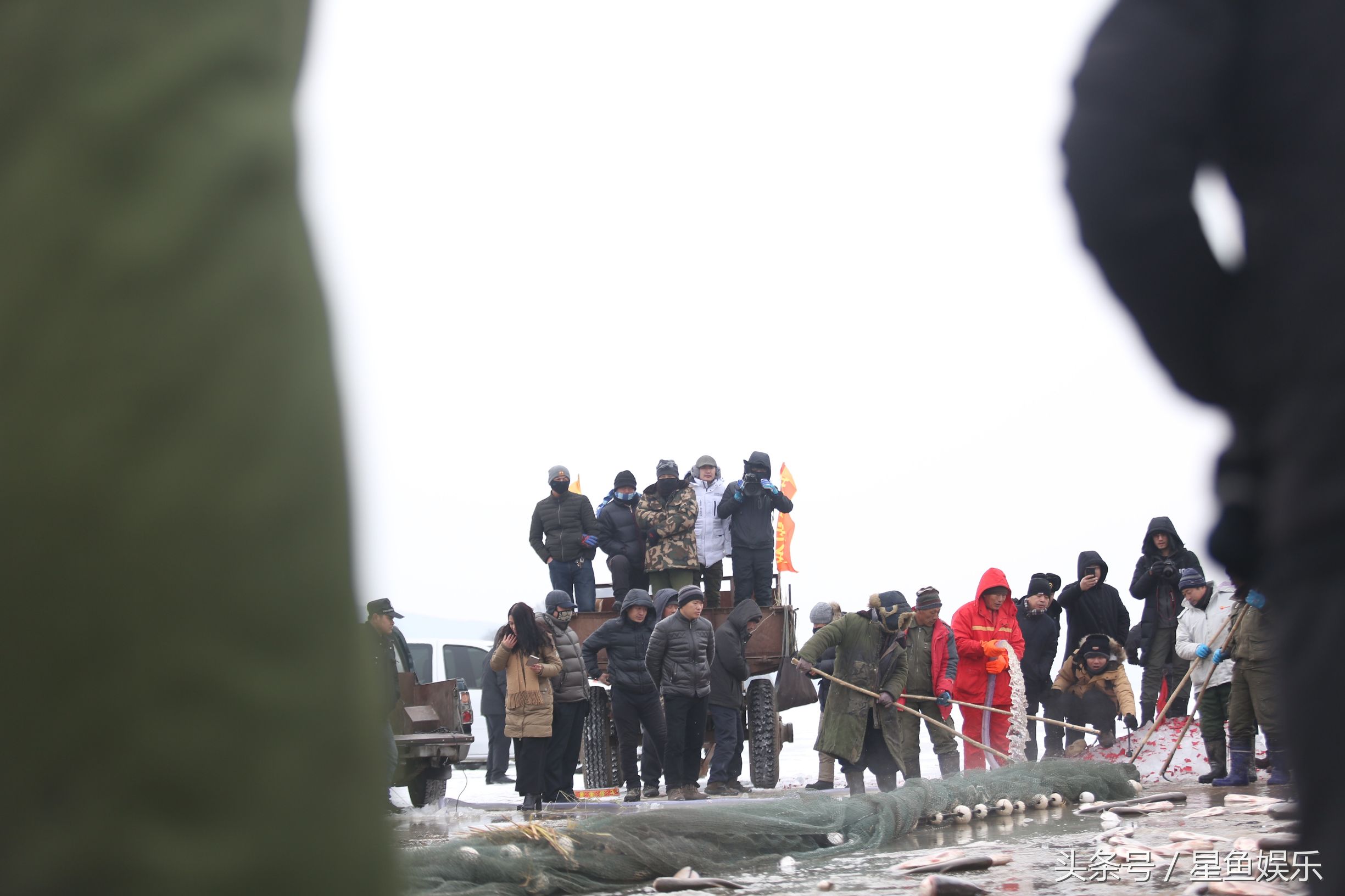 冬捕的村民正在有序的拉网,围观额群众也在时刻关注收获情况