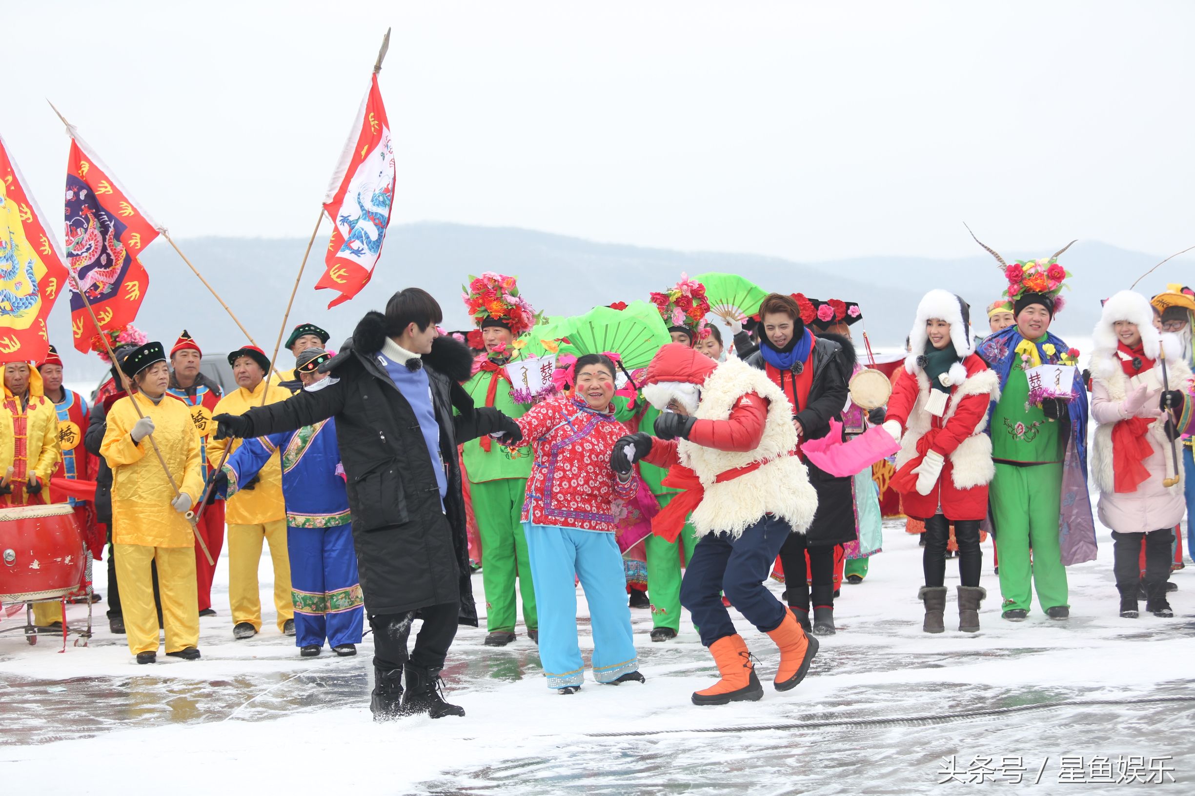 仪式开始,节目主持人李嘉昇以及节目嘉宾zero-g男团铭亮加入到冬捕欢庆的鞑子秧歌表演中,祈福今年能够获得丰收