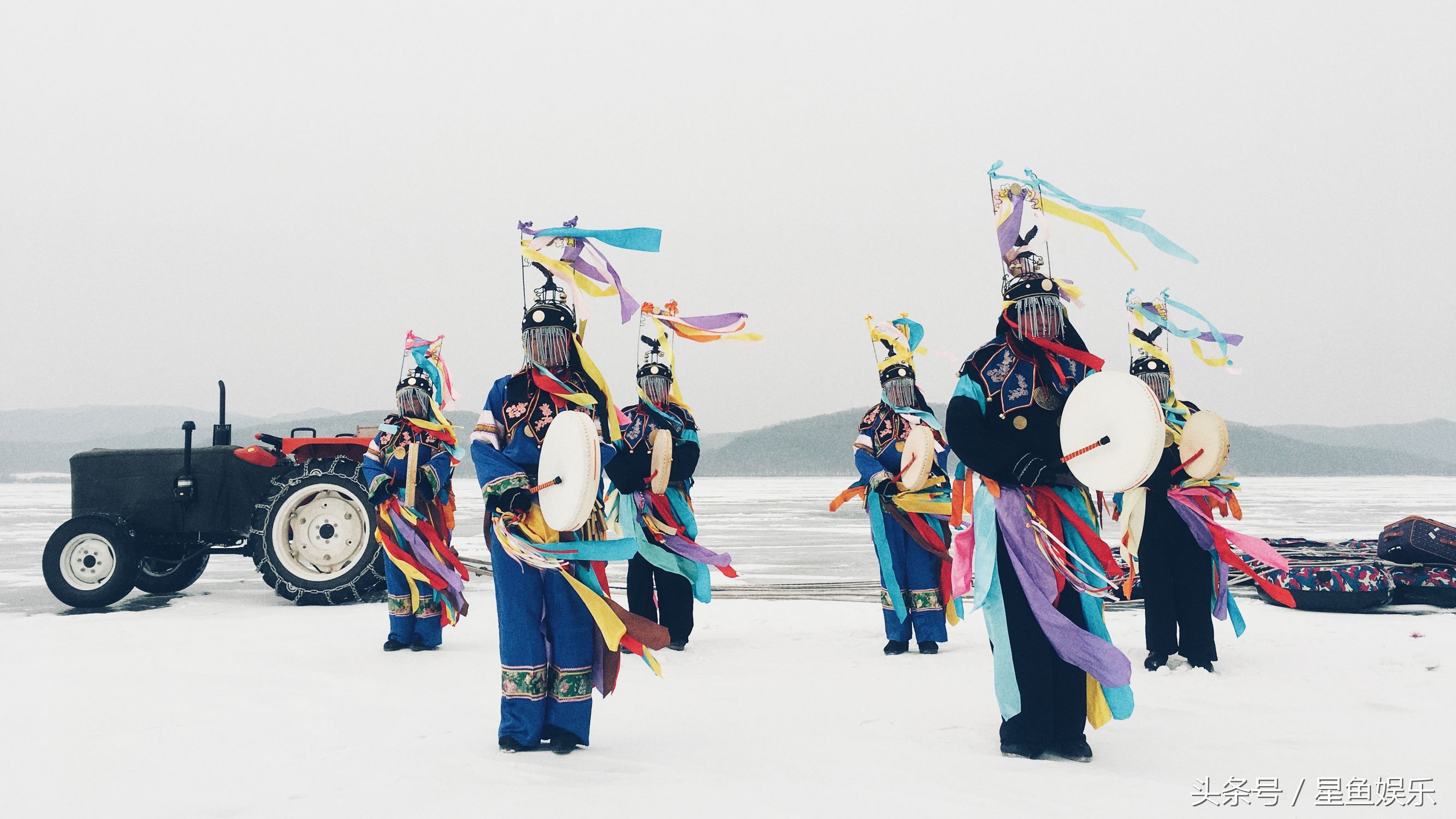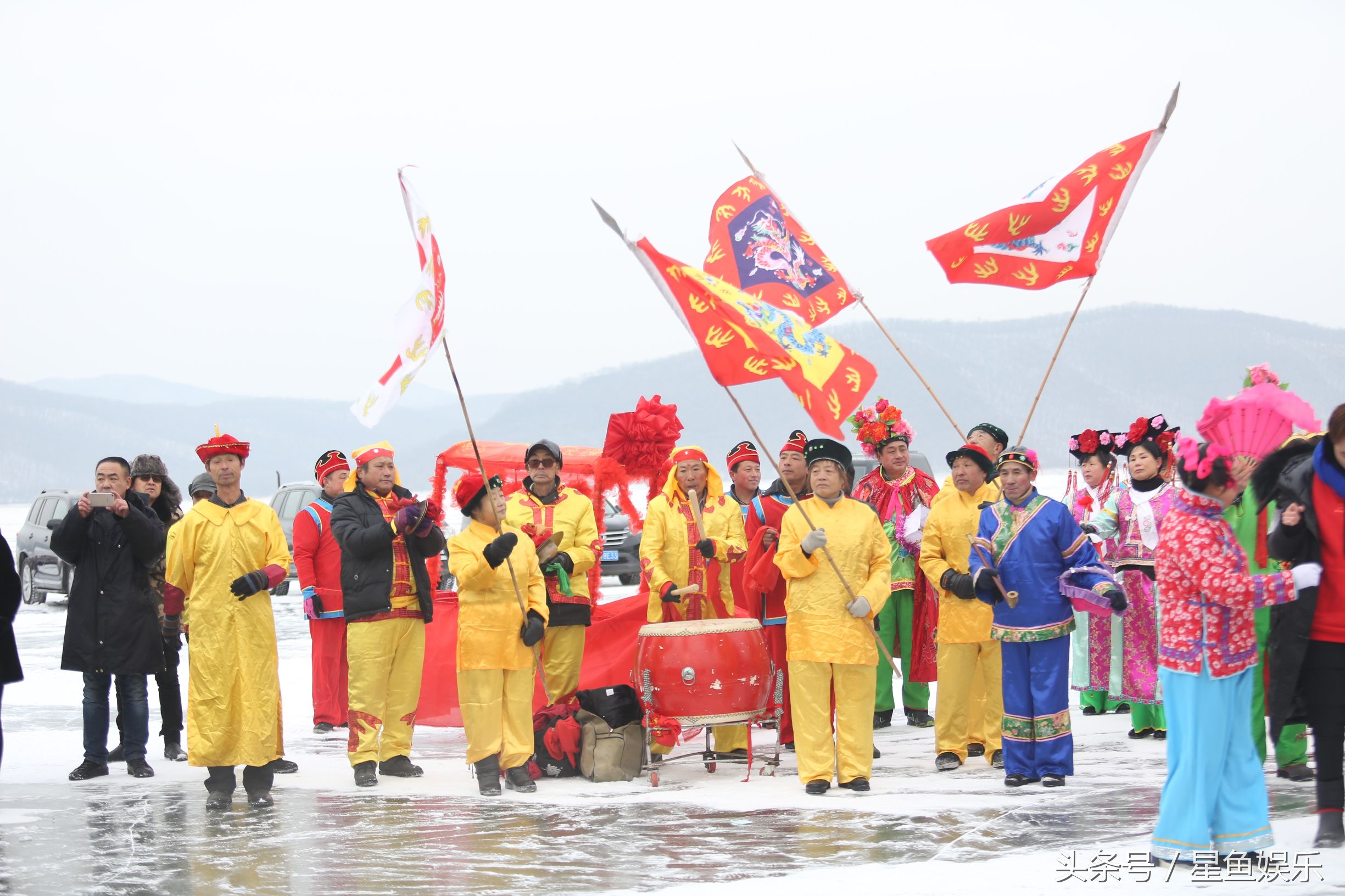 萨满祭祀仪式开始开始冬捕前,镜泊湖鱼把头带领着壮士出征宣读祭湖文,举行祭湖醒网仪式。