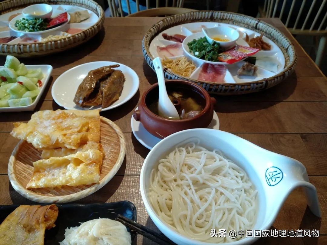 “走,甩碗米线克!”云南人日常打起招呼来,总不会忘记米线这茬子事。云南的大街小巷上最不缺的就是各式各样的米线馆子,一碗米线能让号称“家乡宝”的云南人,顿时“板扎”起来。鸡汤作底,鸡丝作辅,吃之前撒上一把葱花,简单又清爽,怎么都吃不腻。