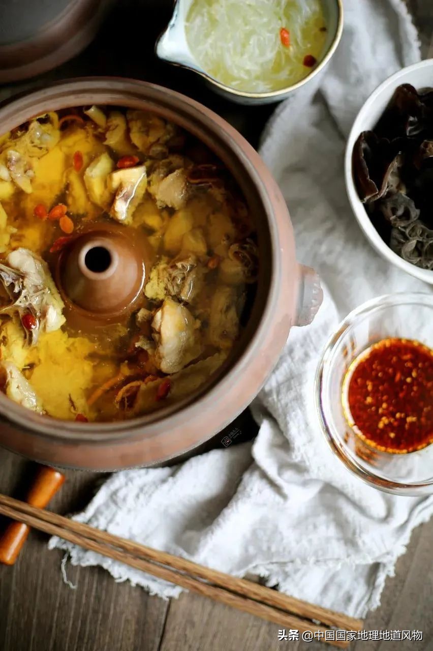 汽锅鸡,从滇南建水县走出,以“最存鸡之本味”的优势,成为如今国宴菜中的“扛把子”。鸡汤清如水,味道却无比香醇。让汽锅鸡存其本味的秘诀,全在于“汽”。