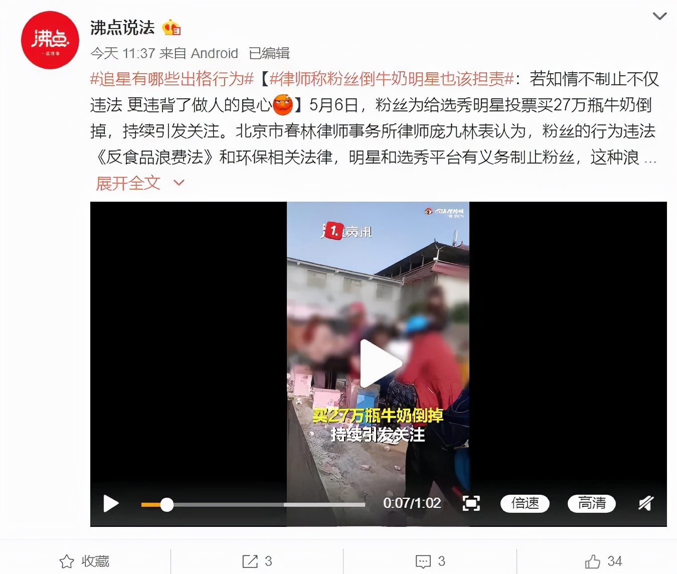 特别是第三季《青春有你》,一些粉丝为了给选秀明星投票,买27万瓶牛奶倒掉……