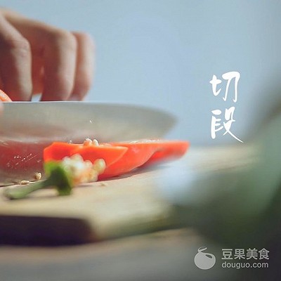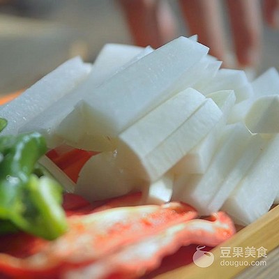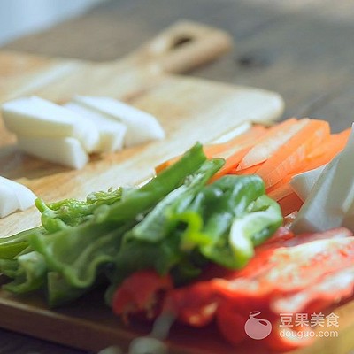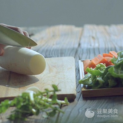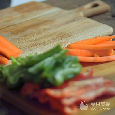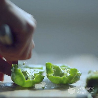 4、切成条状青椒,备用。
