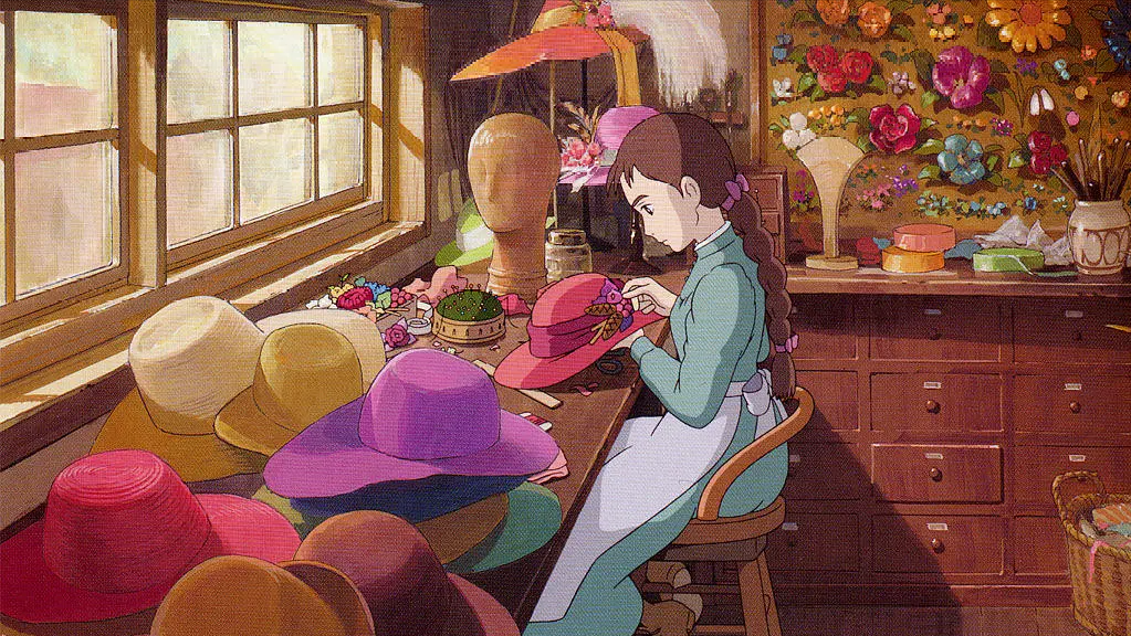 故事的女主角苏菲是家族的长女,所以她认为自己有责任继承家业,留在父亲的帽子店里工作。尽管她心里并不甘愿留在这小店里度日,但她总是逆来顺受,就连妹妹蕾蒂都不禁问她: