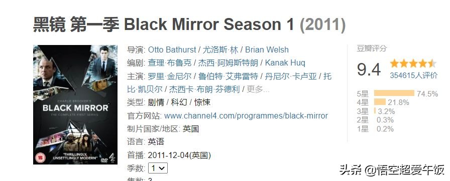 四:黑镜一部口碑爆棚的科幻神剧,豆瓣评分有9:4,我真对这部剧真的是太爱了。每一集呢都是一个单独的小故事,讲述的是对于未来的预测,而且里面包含很多热点话题例如像ai、科技、宗教、女权等等,整部剧的单词非常全面,能听到各个领域最热的词汇,在考试中经常会出现,适合大学及以上水平的同学观看。