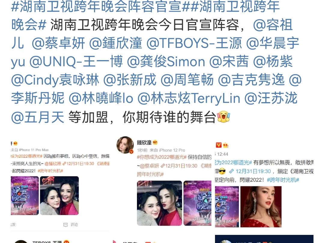 湖南卫视公布了豪华的跨年嘉宾阵容,其中杨幂、王一博、龚俊、宋茜等人气偶像悉数在列。而主持人阵容却迟迟未公布,往年的主持人名单都是提前公布的。