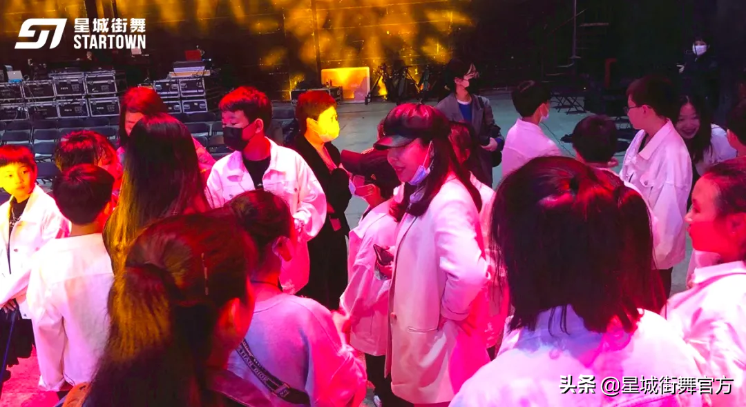 时间回到3月26号(正式演出前夕),星城街舞的舞者们在老师的带领下提前一天来到演出现场进行彩排。为了能够在演出当天呈现出最完美的效果,小演员们反复的上下台走场、练习。