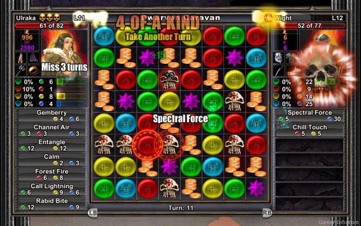 即便是今天看来,作为“消消乐”的《超级街霸方块2》仍堪称创意满满,而且当年这部大厂手笔的经典ip外传也确实以其新颖的玩法和独特的幽默感赢得了玩家和媒体的一致好评,之所以被埋没到了2017年才被卡普空重新记起,恐怕只能说除去某些特殊原因外,愿意在pc端玩儿一款“消消乐”的玩家着实不多;而这样看来,哪怕是到了2008年,infinite interactive也只是在徒劳地在挖掘这类游戏可能的极限,他们的《益智之迷:战神的挑战》(puzzle quest: challenge of the warlords)相当成功地用“消消乐”的形式模拟出了传统“龙与地下城”式的冒险,但想以此彻底征服玩家,似乎还欠着那么一点儿火候。