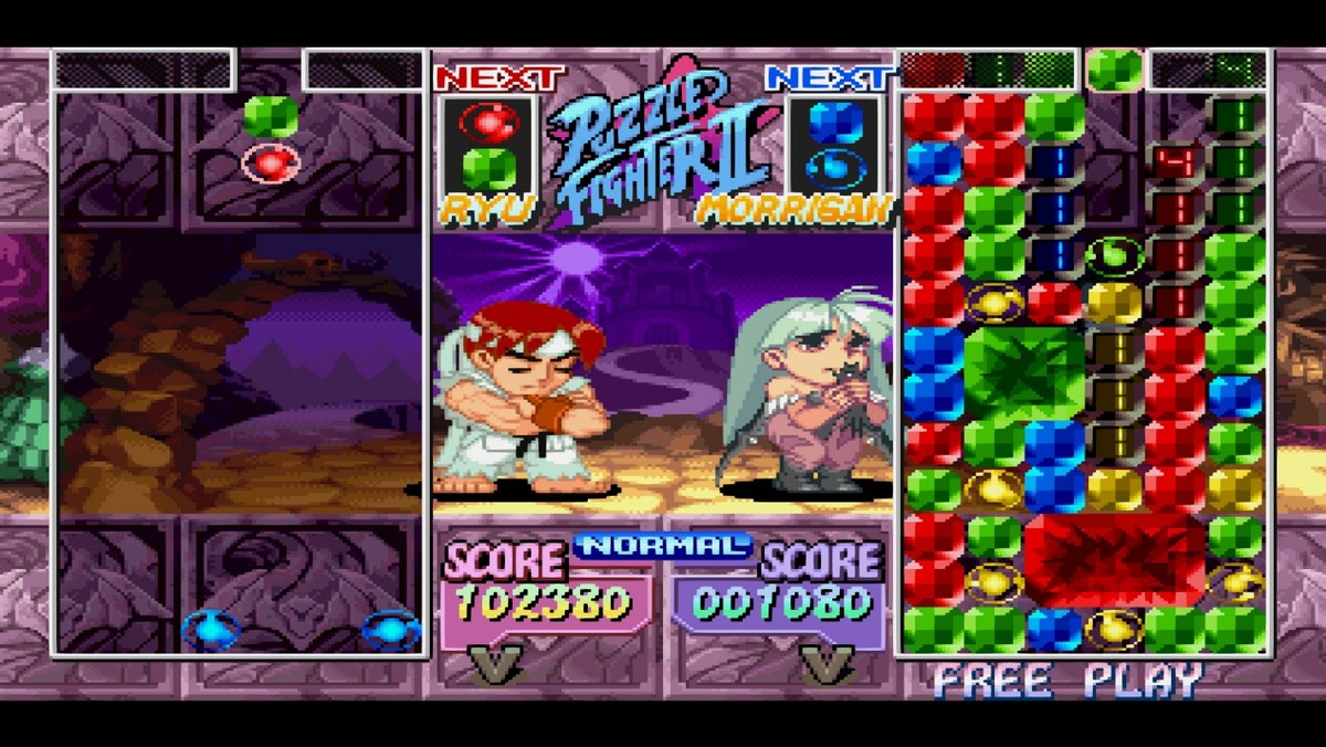 没错,我说得就是《mirror 2 project x》——或者更准确地说,是除去了擦边球内容的,这类的想方设法在传统“消消乐”里整点儿新活儿的机制整合型消除类游戏,其类型最早甚至可以追溯到1996年卡普空的《超级街霸方块2》(super puzzle fighter ii turbo)。顾名思义,这是一款以动作天王经典ip改编的嗯……益智类动作游戏,玩家需要通过消除自己的方块给对手造成麻烦,并根据方块的消除情况指引自己的格斗家发动相应招式打击敌人,或是出言嘲讽。