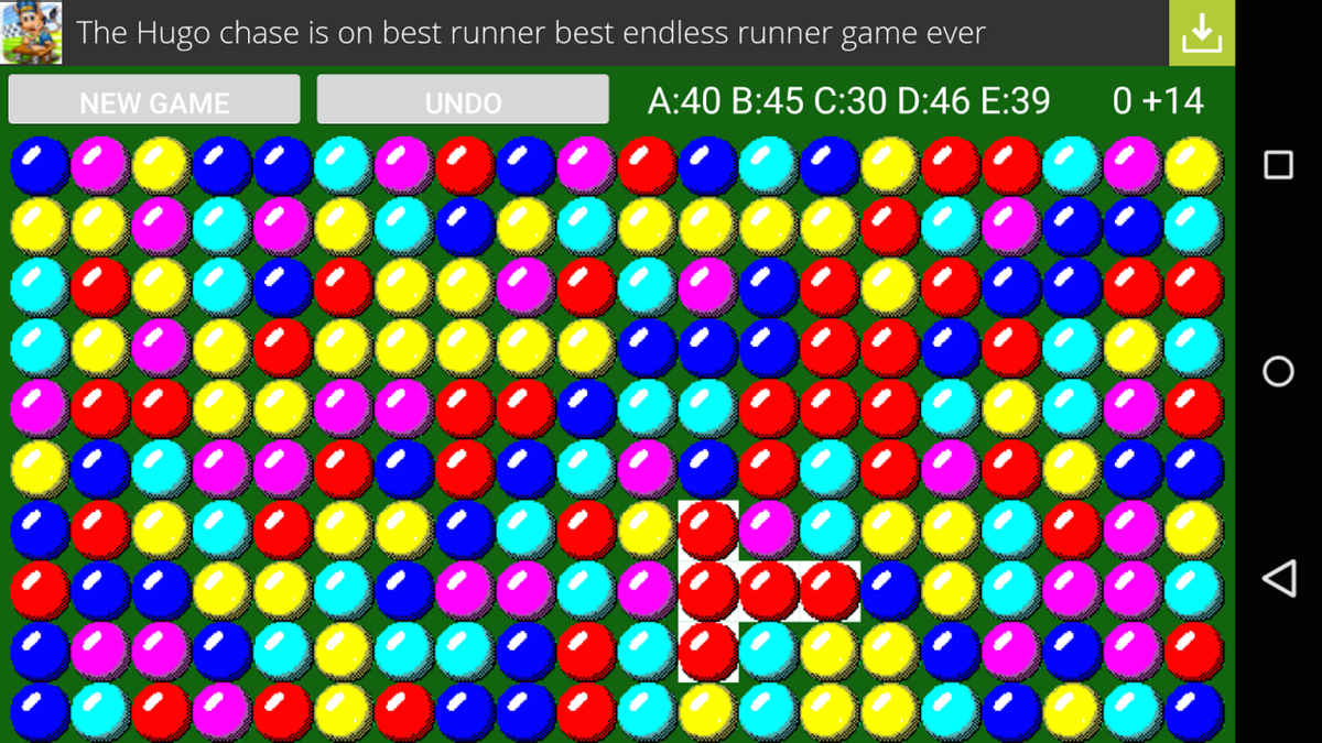 在五颜六色的经典棋盘之上,玩家需要连接相邻的相同色块使其消失,让没了这些色块支撑的其他色块自然下落从而改变棋盘的上的色彩布局,之后重复上述操作,尽可能消除更多的方块得到更高的分数,直到棋盘上不再存在相连的两个色块为止。
