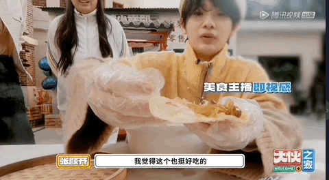 在美食面前,他们可以完全不顾形象:周震南表演“沉浸式吃播”,连专业的带货手势都出来了;