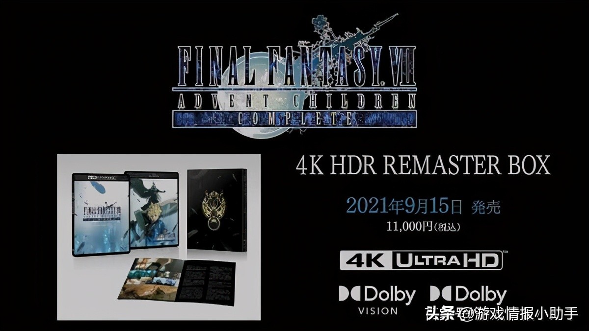 本次的《最终幻想Ⅶ:圣子降临完全版》将是一部基于2009年的《最终幻想7:圣子降临完全版》制作的4k、蓝光重制作品,并支持hdr10和英语+日语双语杜比全景声,完全版相较于原片增加了25分钟的时长并修改了大量场景。