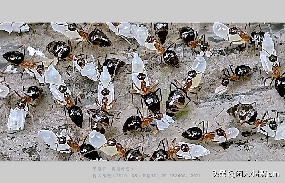 而一些微小的蚂蚁,在取食或是一些活动中,有群聚的习性。这也是个很好的拍摄时机。