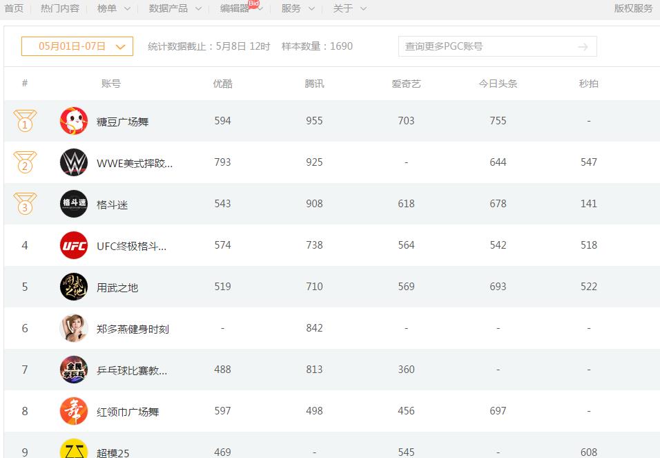 近日,国内知名内容创业服务平台新榜公布了上周(5月1日-7日)的榜单,红领巾广场舞与国内最大的糖豆广场舞共同荣登pgc视频榜,其中红领巾广场舞位居体育健身类第8名,新榜指数784.2,位列视频总榜239名。