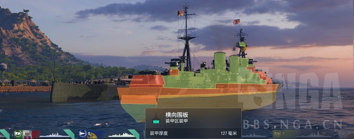无比的末尾装甲带问题相当严重,次要装甲带127mm覆盖面积过小。一些大口径或者小口径船(拥有特殊跳弹角)可以绕过127mm部分,直接通过穿透命中核心区的127mm横向围板出核心。25mm+127mm的装甲就能爆核心。