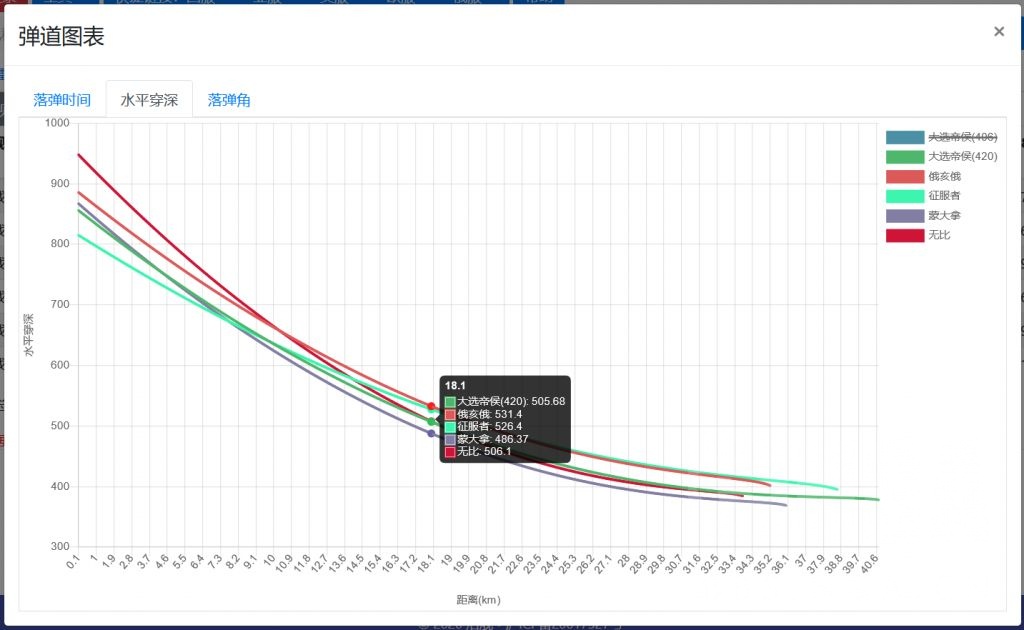 无比弹道相当差,再来看无比的穿深。无比地穿深在中距离(12.5km-17.6km)基本上可以视为和大选帝侯420对标的穿深。(两者之间穿深差距不超过20)。但是由于你是大口径508。可以说无比的相当糟糕。