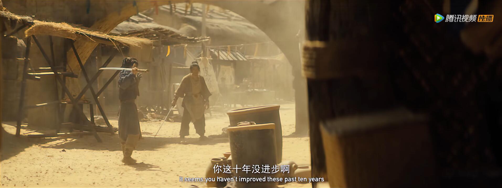 影片的故事背景发生在明朝末年,主人公提到他是浙江义乌人,曾在东南沿海抗倭,还读过抗倭名将俞大猷的《剑经》,后辗转从江南来到西北边陲沙漠中的小镇过活。