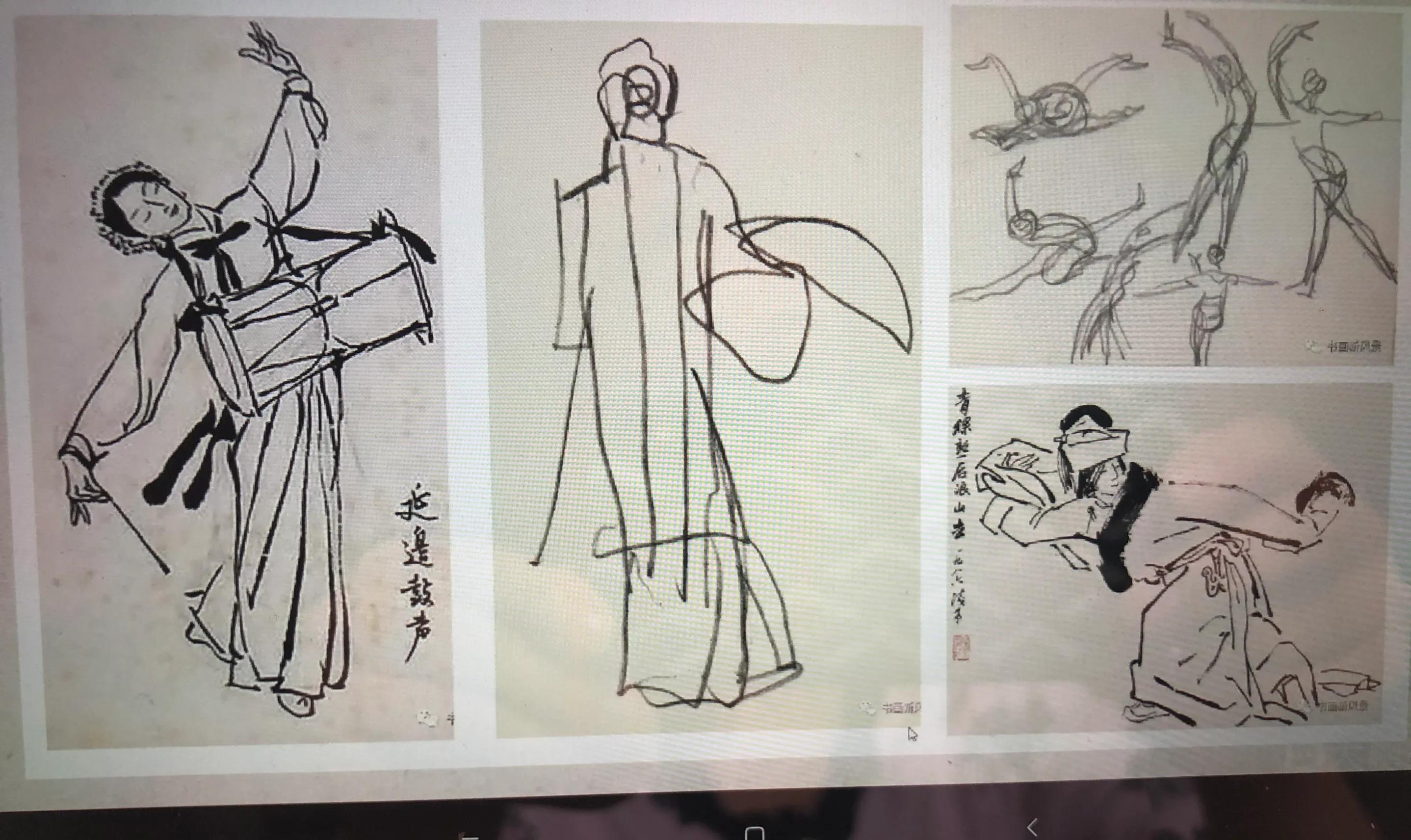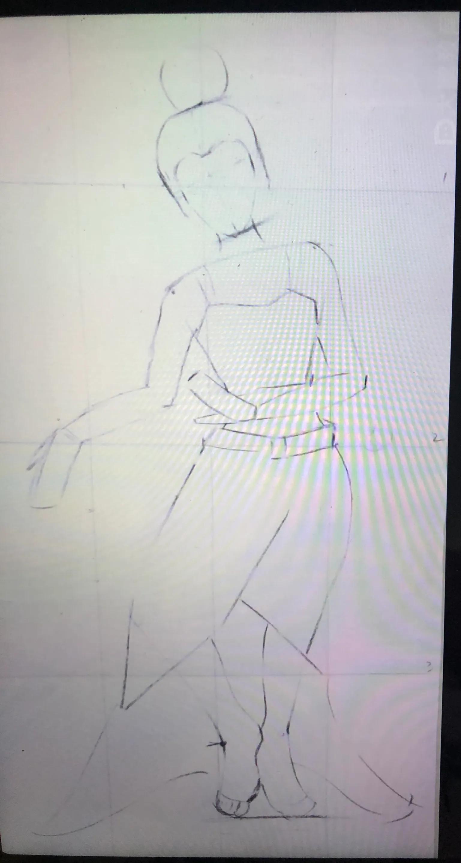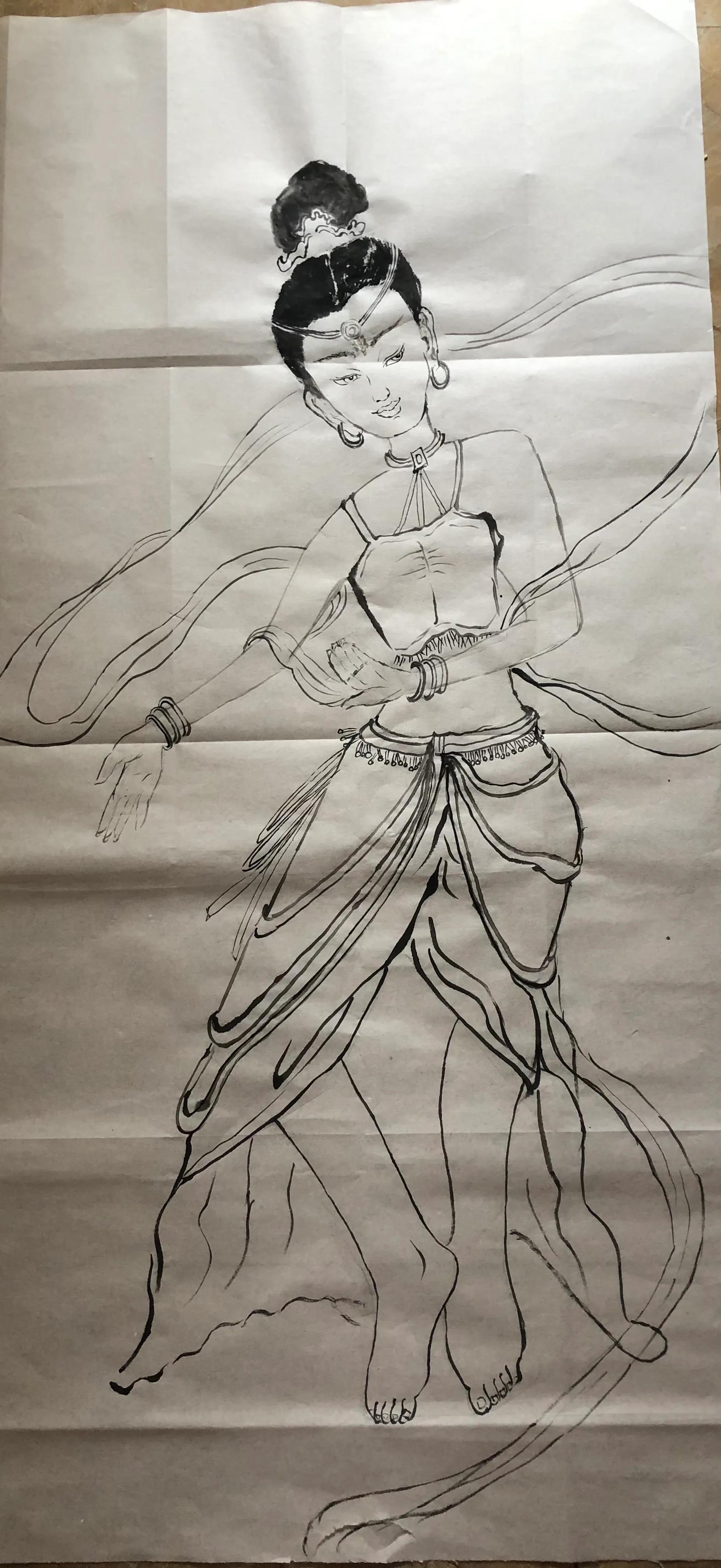 墨线稿完成度80%,腿略粗,左脚肥大了,线条不够流畅。