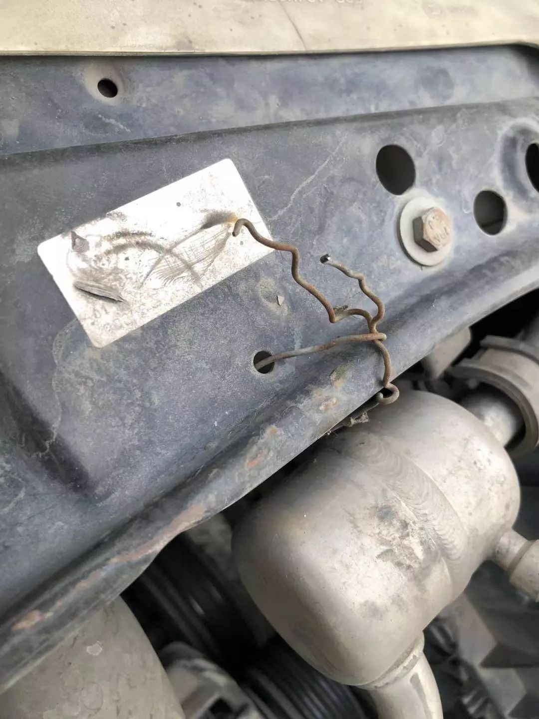 要注意仔细观察正前方黑色的水箱框架,与翼子板梁连接处的两颗螺丝。