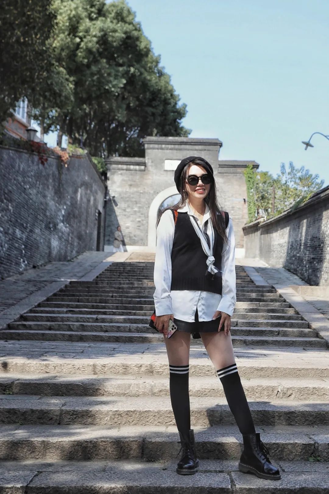 那晚穿了一身旗袍,在西津大市拍照留念下。