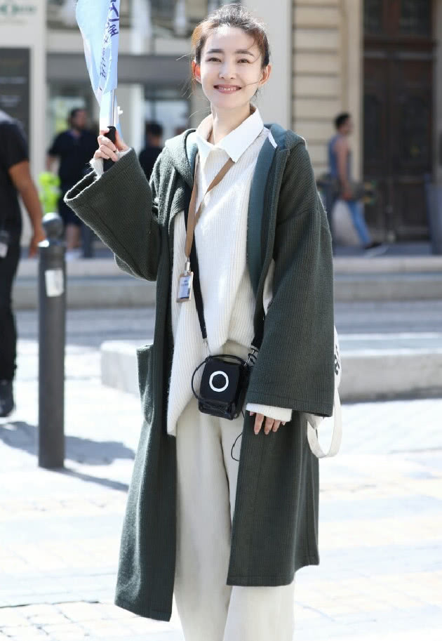 王丽坤身穿一件白色毛衣,搭配一条白色毛呢阔腿裤和军绿色的开衫,干脆文艺范的打扮,带来的是一种娴静美妙的感受。和顺的笑脸更是常醉人。