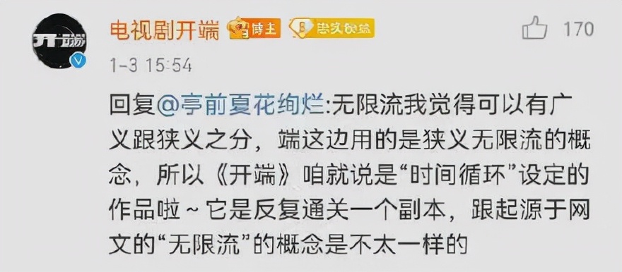 《开端》开播前不被看好也是这个原因,官博还特意出来解释关于“无限流”与“时间循环”的争议。