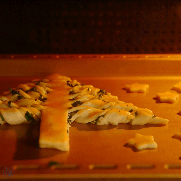 烘烤后的手抓饼酥酥脆脆,再配上浓郁的葱香,给这个圣诞节平添了中式的口感和味道,只要尝过一口就停不下来!
