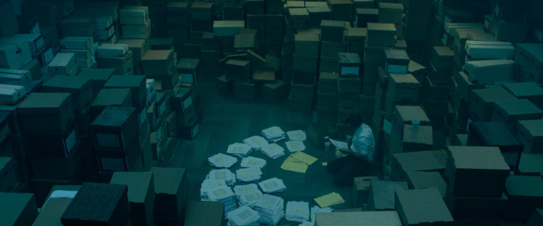 面对杜邦甩来的一仓库资料,罗伯选择咬牙扎进去,誓要找出真相。盘腿坐在资料山中间的马克叔,生动诠释了个体面对权势时的渺小。
