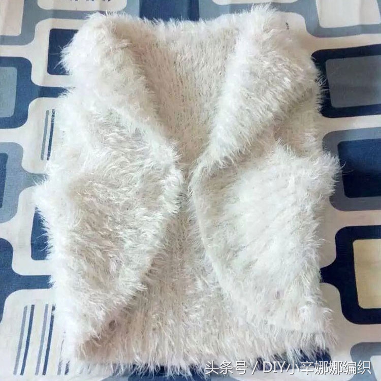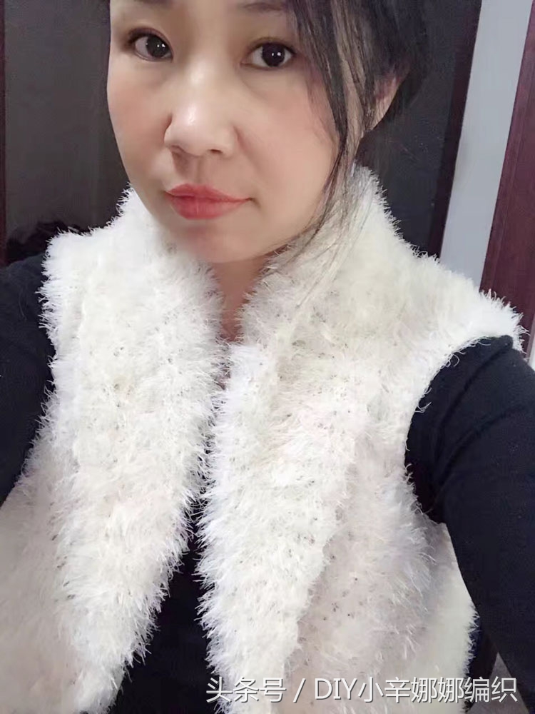 这款小坎肩,娜娜用的是小辛娜娜编织店里的水晶长毛貂绒线,手感舒服柔软,成品轻盈、时尚、高贵,爱不释手。