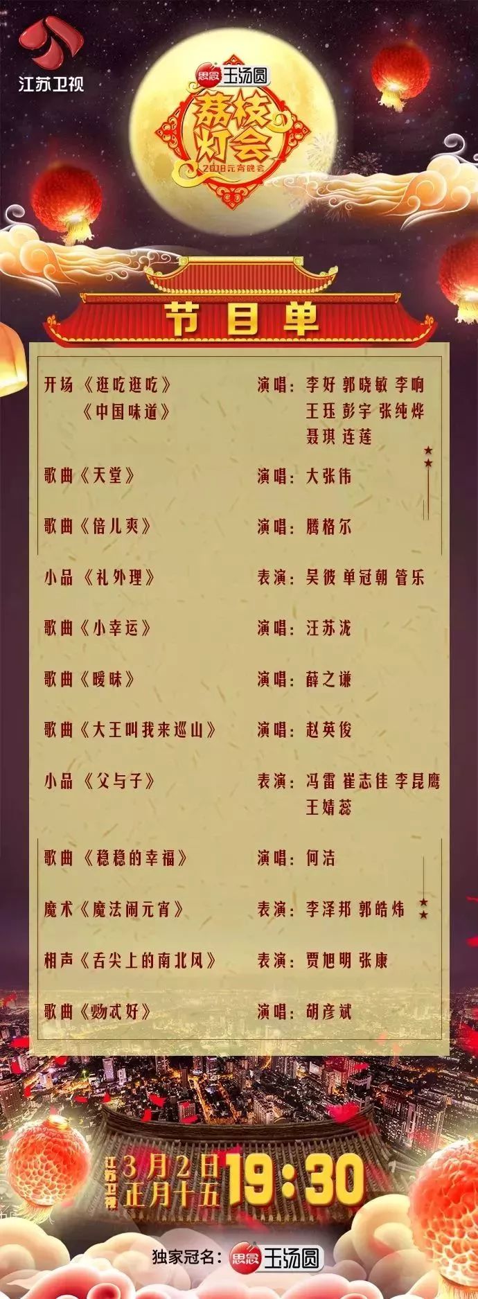 今晚19:30江苏卫视元宵荔枝灯会欢乐来袭,他们为你掌灯而来。
