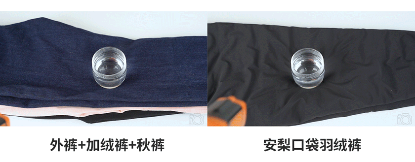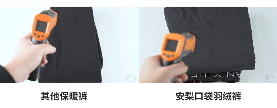 小编拿到手后也立马测试了下它的保暖锁温效果,首先我们测量了下常温下本款羽绒裤和另一款羽绒裤的内里温度。