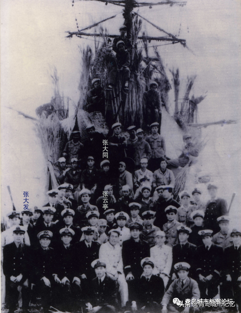 2月14日,新海连特委书记谷牧等领导人接见了全舰官兵,并举行了隆重的欢迎大会。2月16日,华东军区司令员陈毅签发命令,给全体起义官兵每人晋升二级,鞠庆珍升任“黄安”舰舰长。起义后,为躲避国民党空军的搜索和轰炸,“黄安”舰驶往连云港南70公里的灌河堆沟港伪装隐藏,休整待命,并留下了一张极为珍贵的照片(图三)。