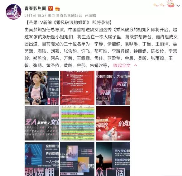 芒果台的综艺节目《兴风作浪的姐姐》,错了,是《乘风破浪的姐姐》才刚录制就引发全网关注,单看阵容就让人超级期待。