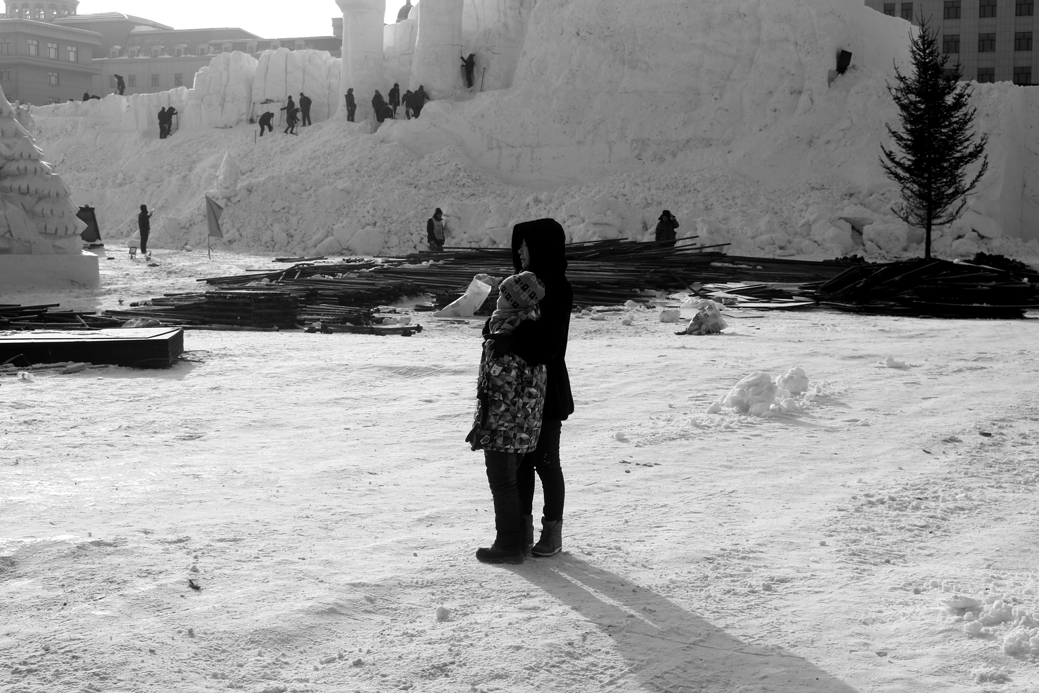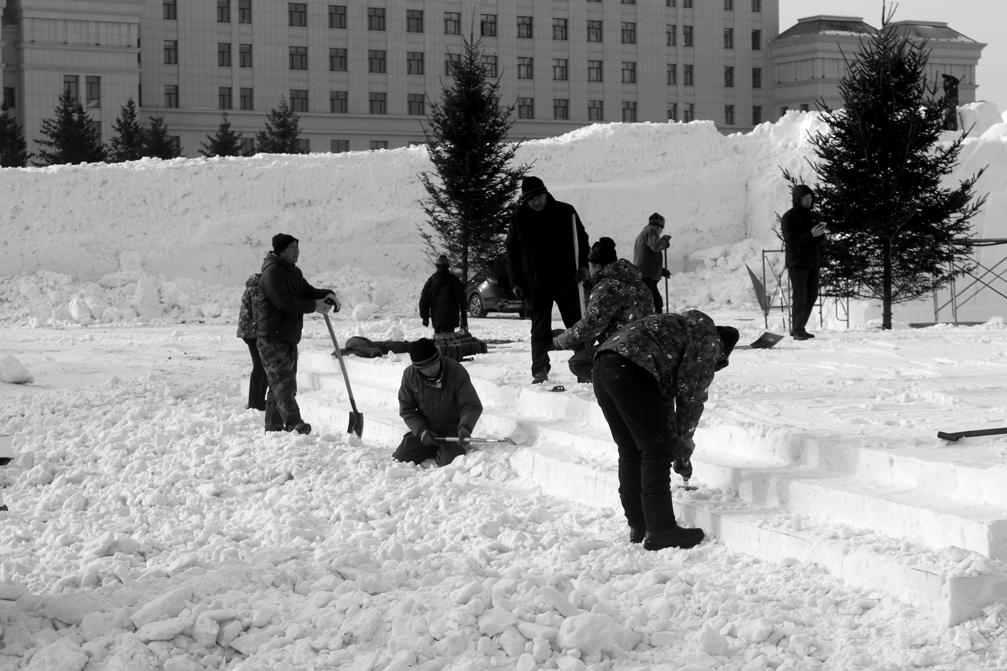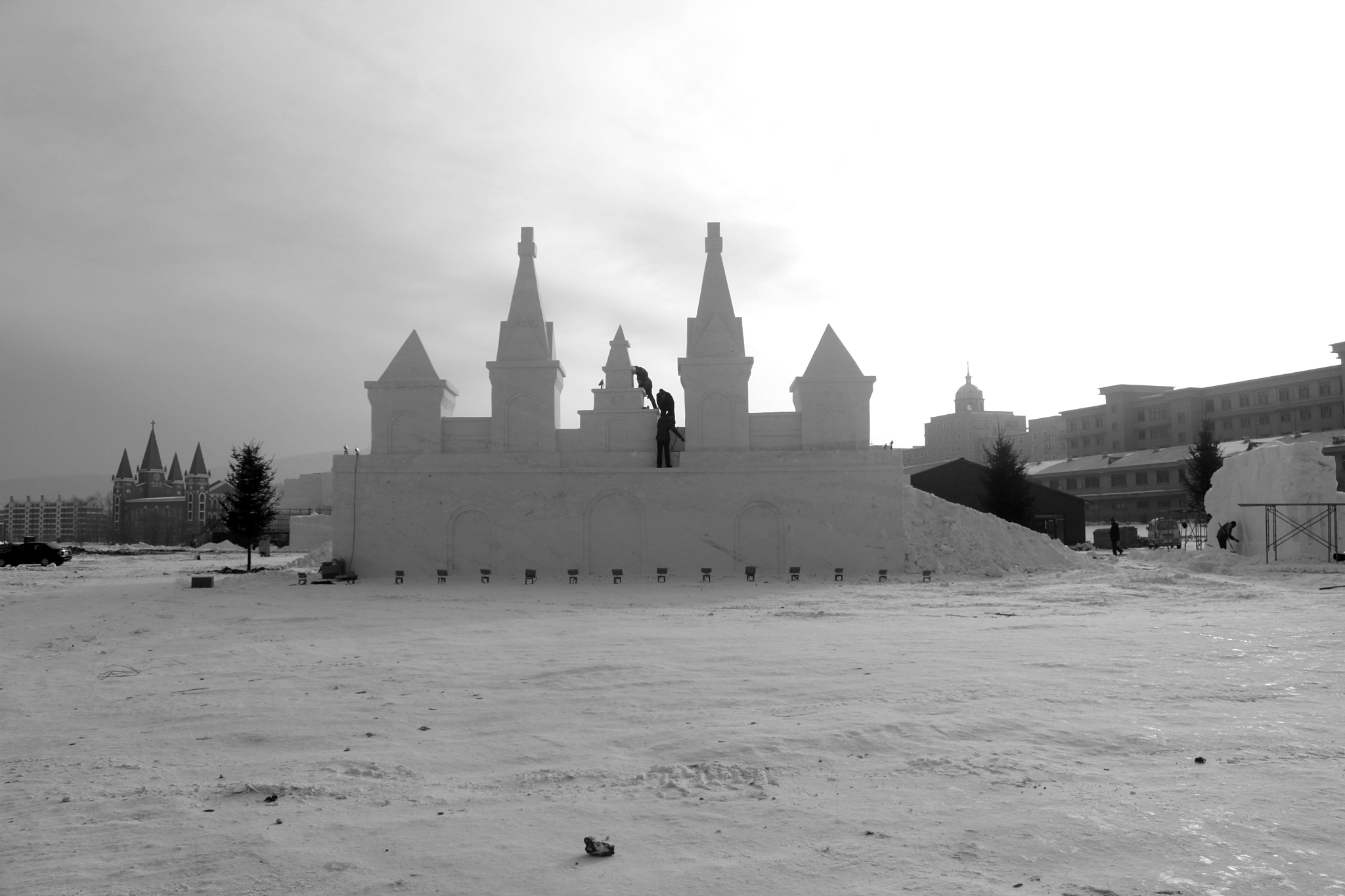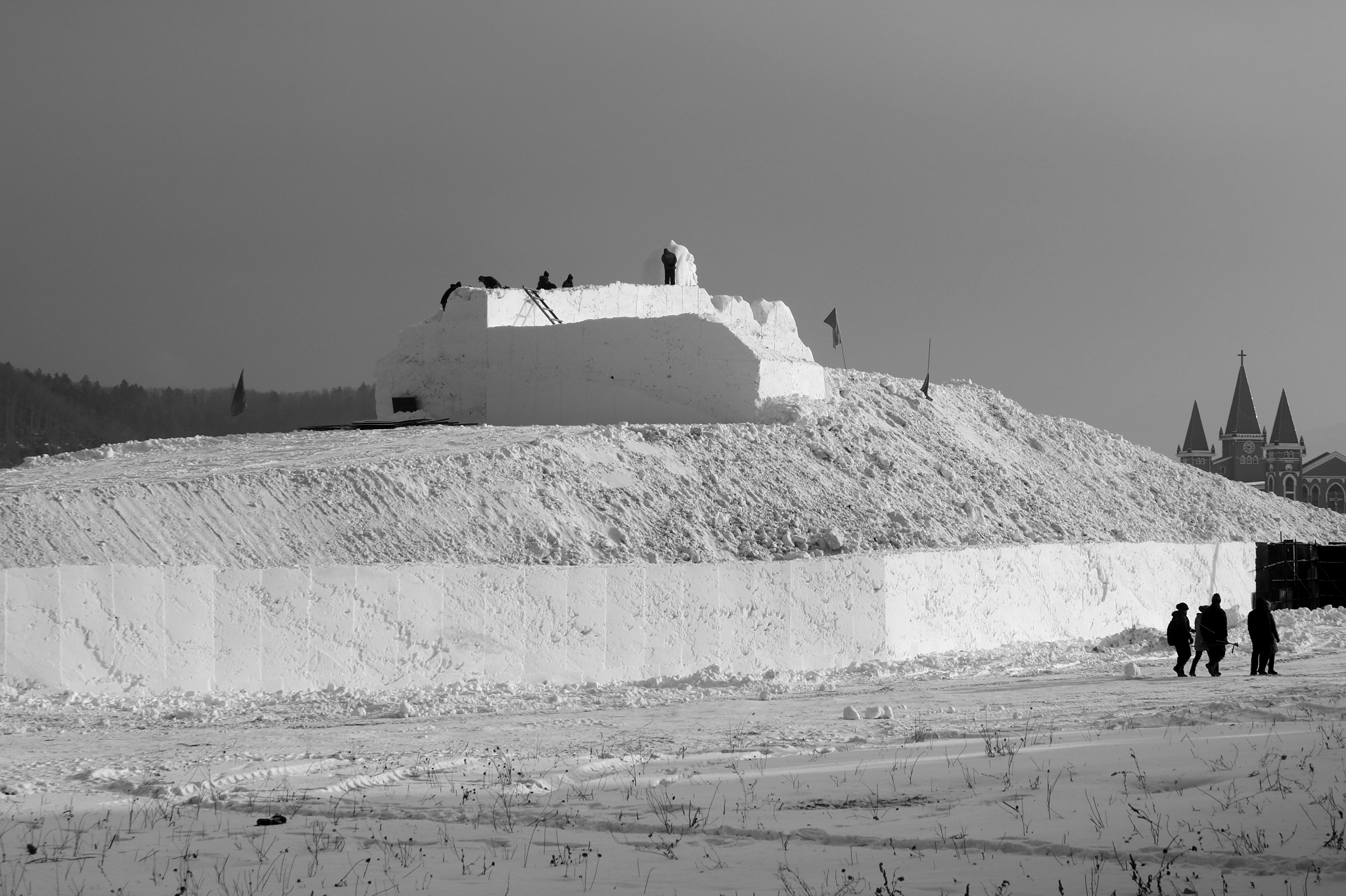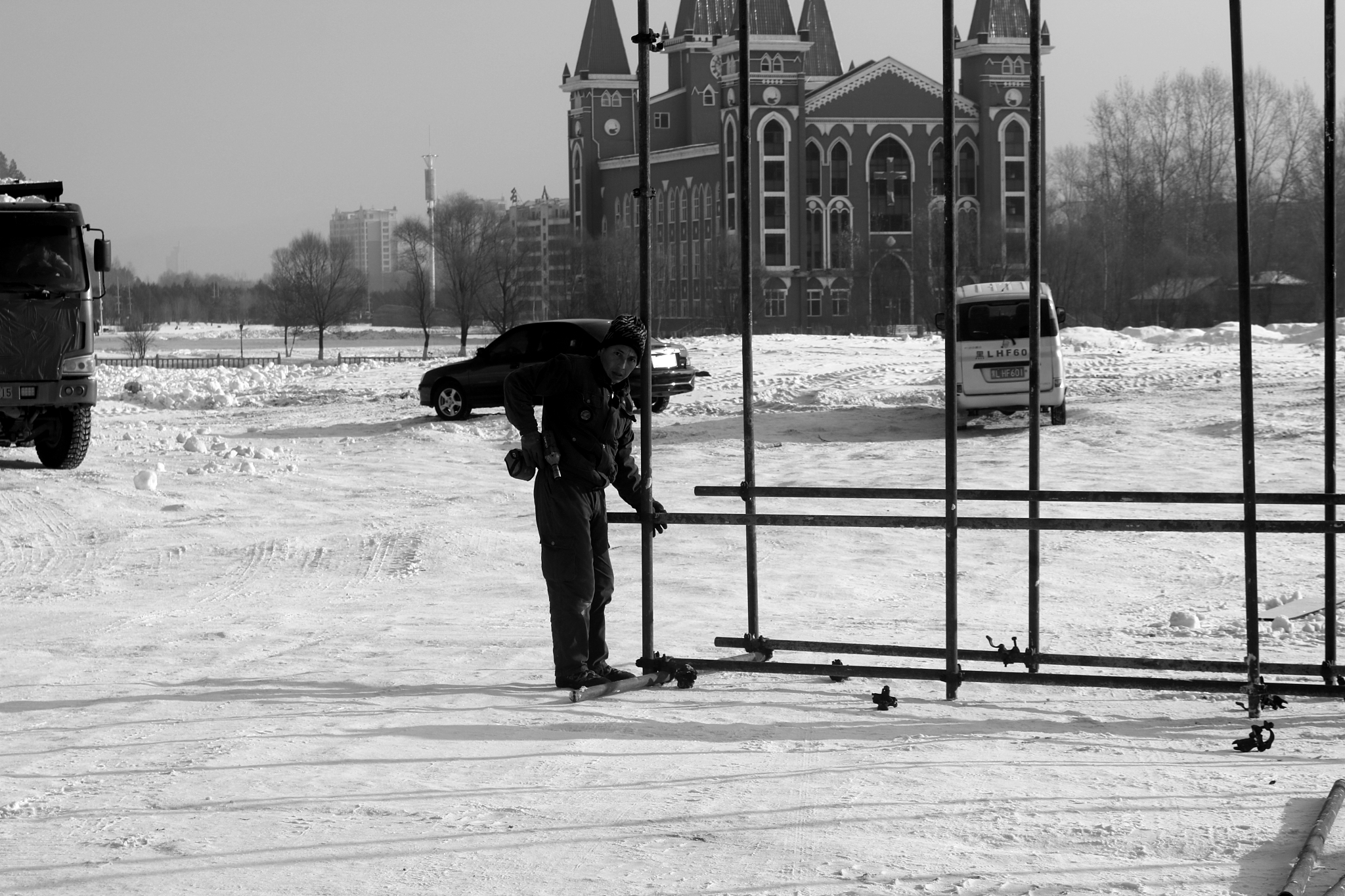 采集地点:伊春市区即将,迎来的冰雪节施工画面。