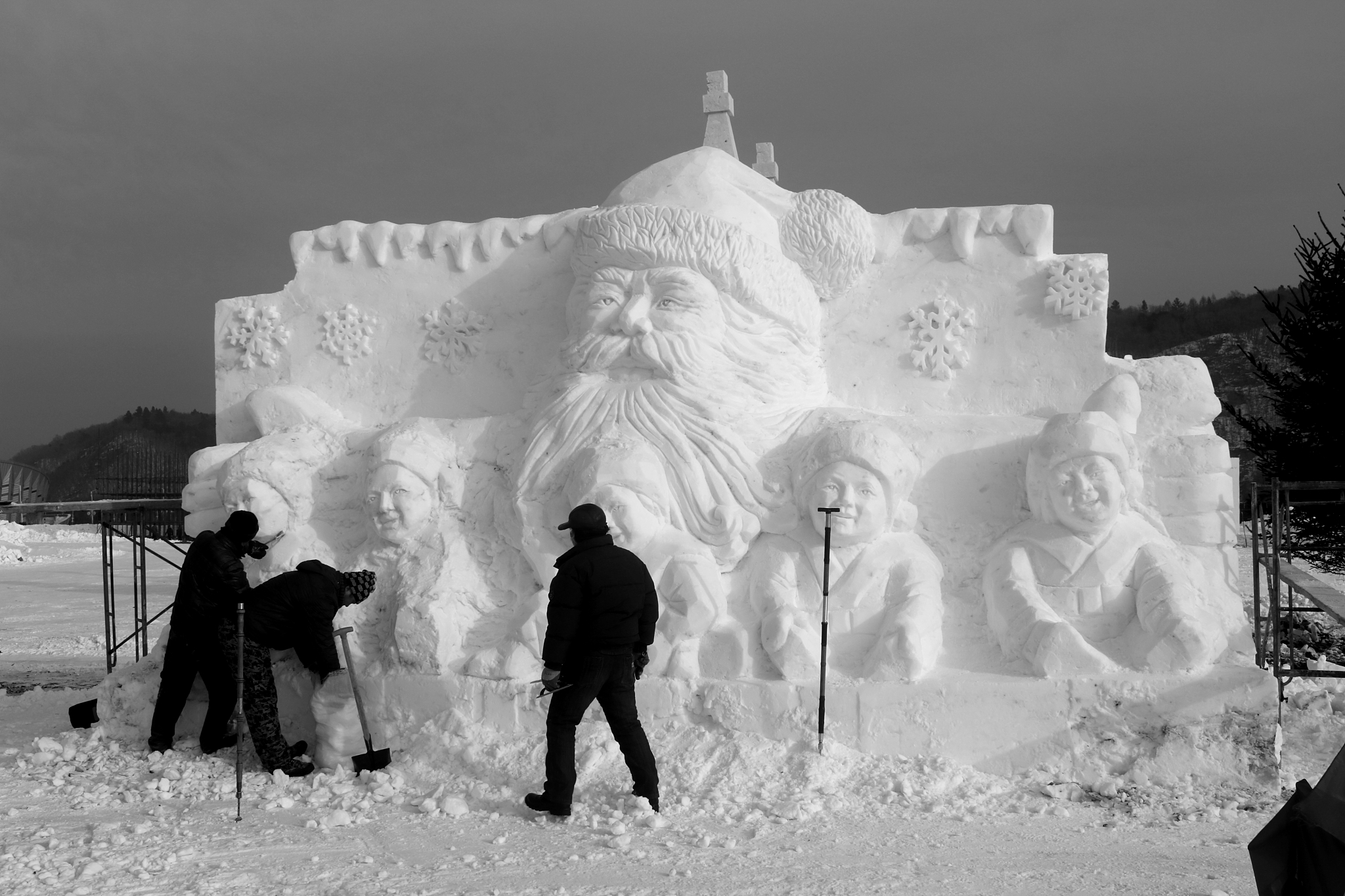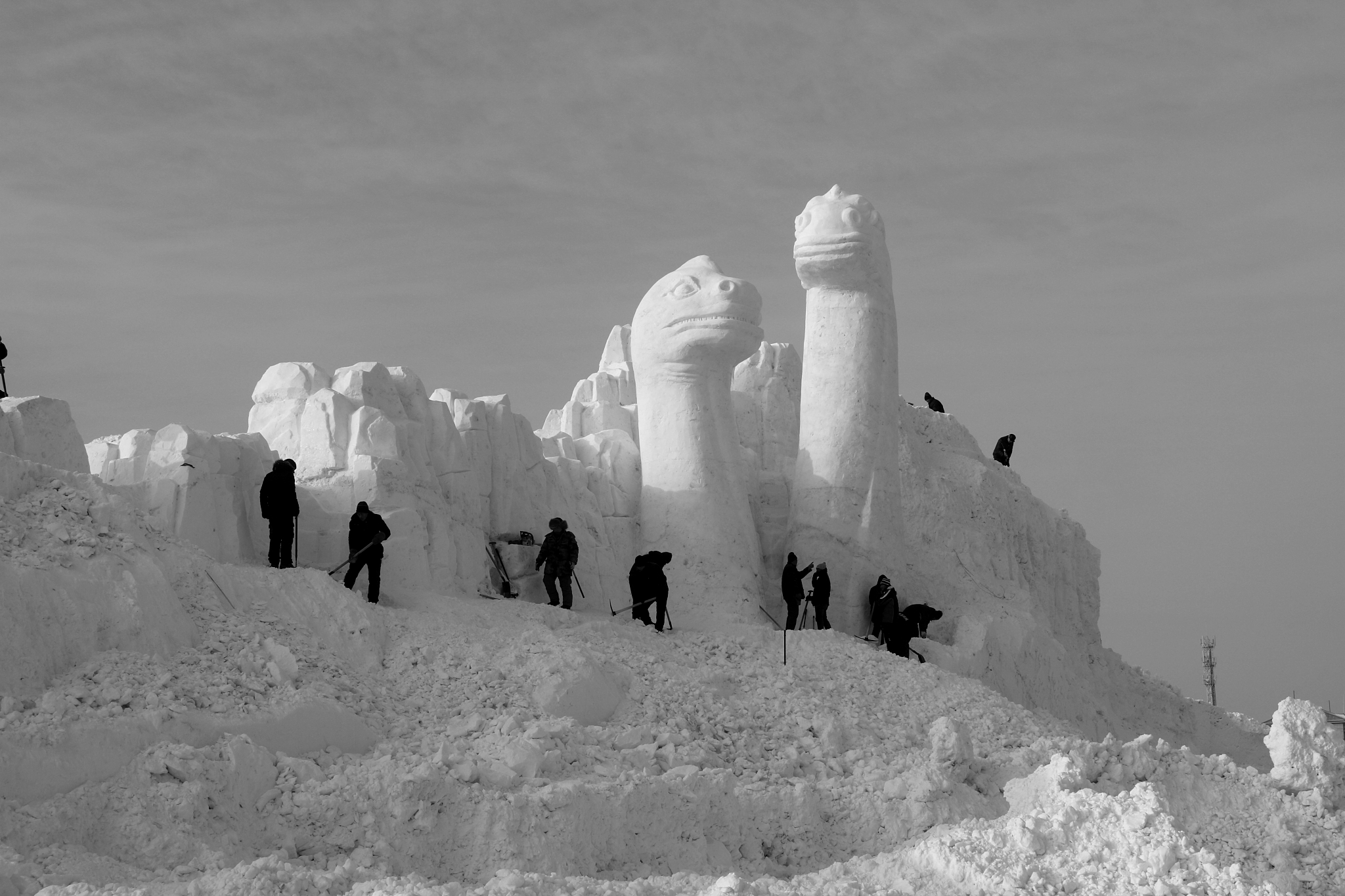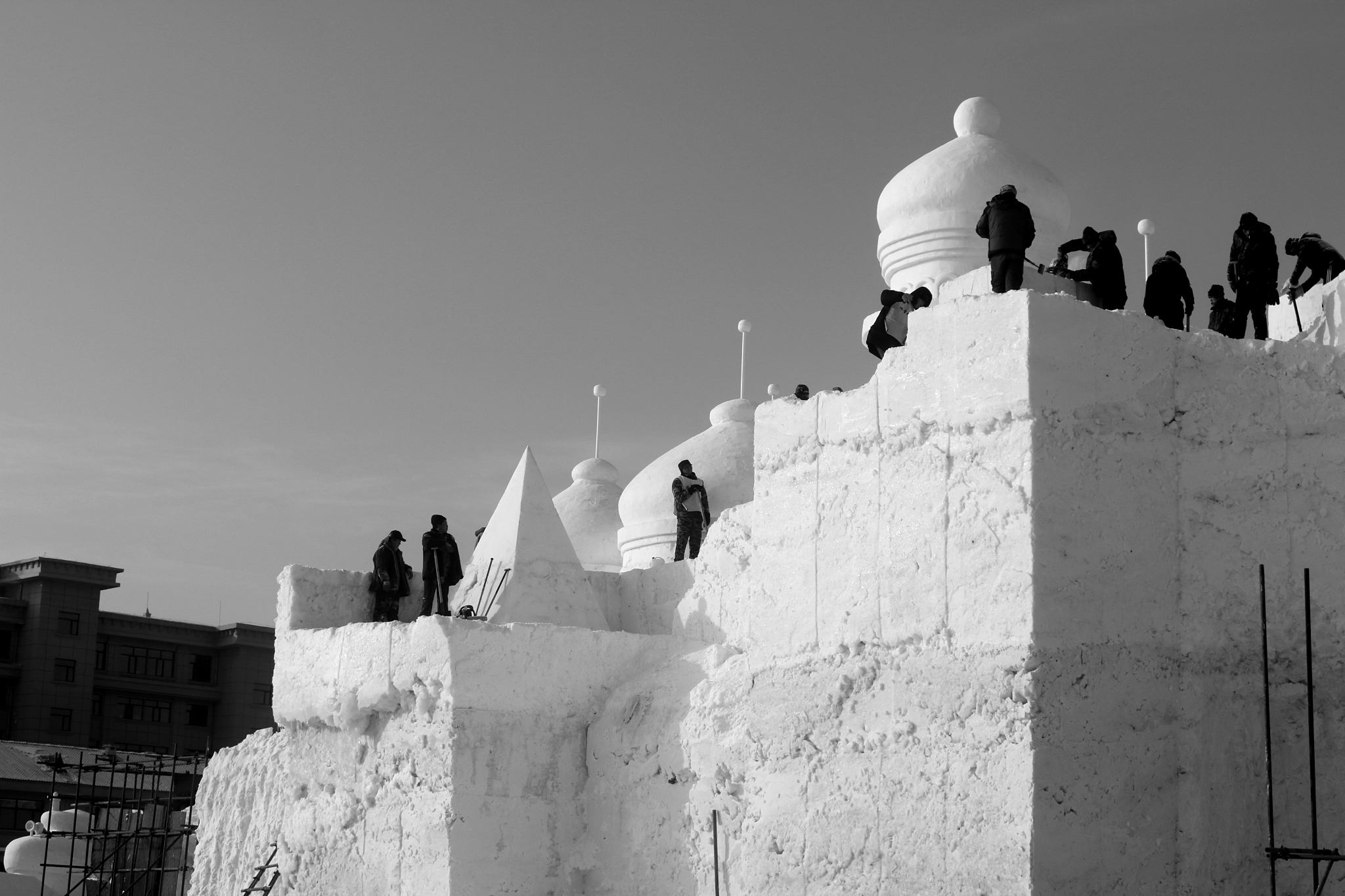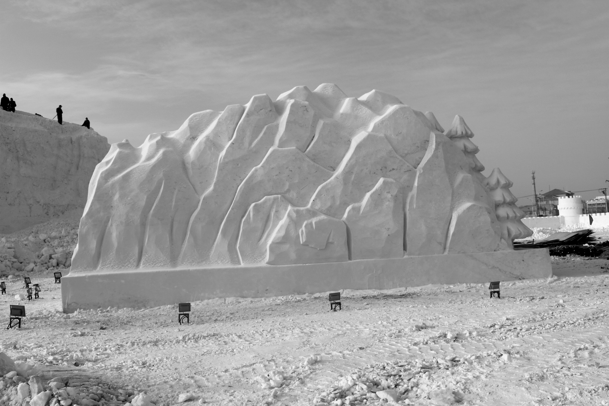 冰镐和雪橇,就是园艺师傅们工具,通过一凿一刻,描绘最完美的雪雕艺术