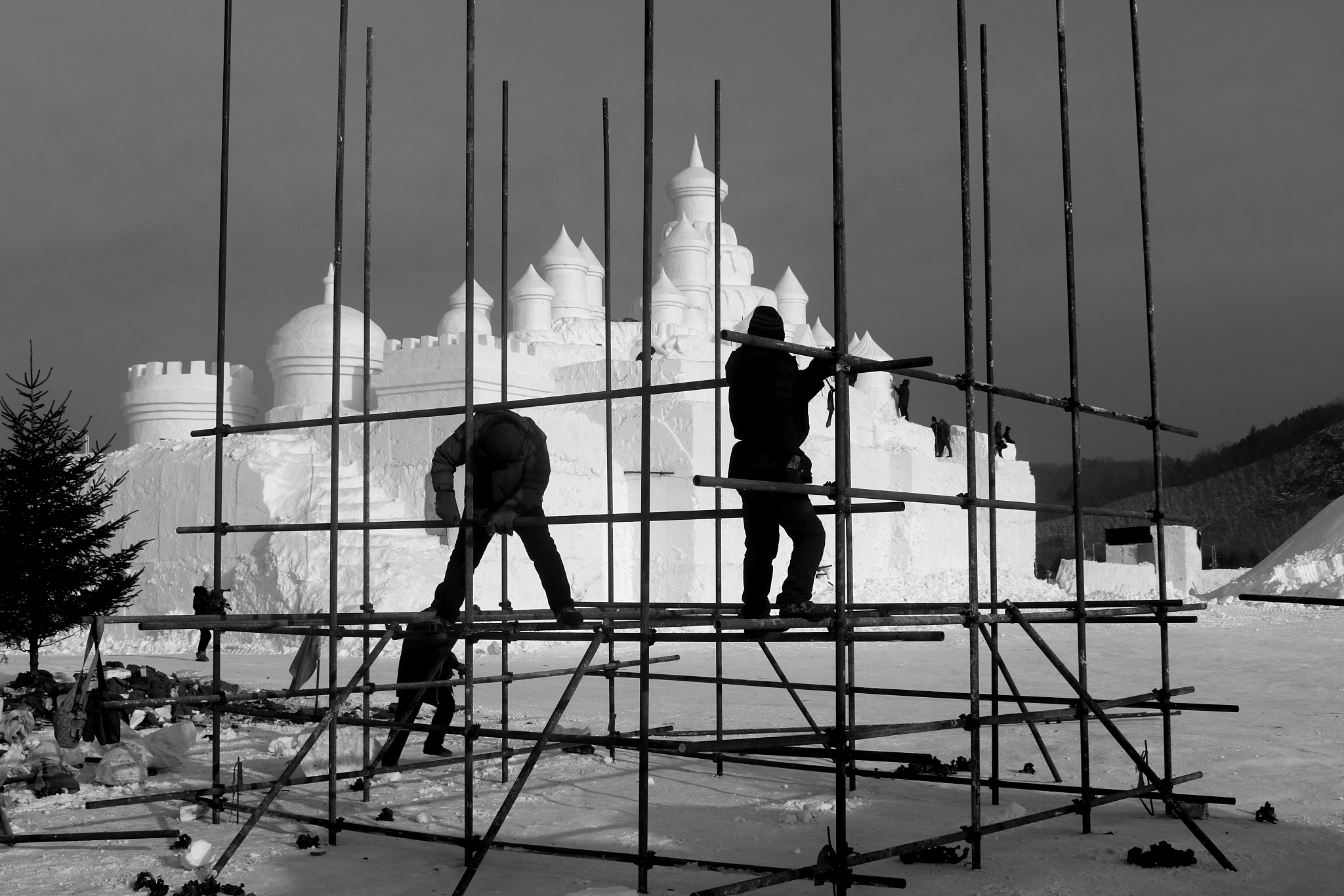 在那些冰雕艺术品的背后,是所有工人师傅们的辛苦与付出。