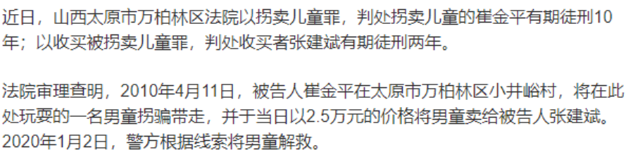 其中最严重的,无非是两年有期徒刑的判罚,这还是他已经收买被拐儿童十年的结果。