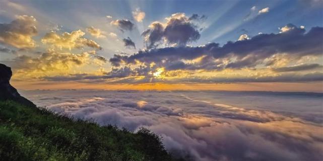 初秋的八面山,日出云海、山衔日落,像一艘巨舰航行在茫茫云海之间。几缕云烟飘浮其上,如纱如惟,如梦如幻,入了眼,也醉了心。